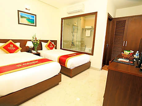Experience an abundance of unparalleled facilities and features at Hacom Galaxy Hotel. Maintain seamless communication using the complimentary Wi-Fi at hotel. Discovering Phan Rang – Tháp Chàm (Ninh Thuận) becomes even more accessible through the taxi and car hire amenities provided at the hotel.For visitors traveling by automobile, complimentary parking is available.During your stay at this fantastic hotel, the attentive front desk personnel can provide you with a range of amenities such as concierge service, express check-in or check-out, luggage storage and safety deposit boxes.Obtaining passes for the town's top entertainments becomes effortless with hotel's tours.At the hotel, utilize the on-site dry cleaning service and laundry service to maintain your beloved travel attire fresh, allowing you to bring fewer clothes. Craving relaxation? Make the most of your stay at the Hacom Galaxy Hotel with convenient amenities like room service and daily housekeeping at your disposal.Kindly note that smoking is prohibited in the hotel to ensure fresher air for all visitors. At Hacom Galaxy Hotel, every guestroom is provided with convenient amenities and fittings to ensure a comfortable stay. Enhance your experience at hotel with the knowledge that certain rooms are equipped with linen service, blackout curtains and air conditioning for your convenience.Certain rooms offer in-room amusement features such as the television for your enjoyment. In select rooms within the hotel, bottled water, instant coffee, instant tea and mini bar is available to cater to your requirements when desired. In the hotel, certain guest bathrooms come equipped with essential bathroom amenities, such as a hair dryer, toiletries and bathrobes, ensuring a comfortable stay for guests. Begin your day with a scrumptious on-site breakfast available each morning at Hacom Galaxy Hotel.Begin your day feeling refreshed and invigorated as you enjoy a delightful cup of quality coffee available at the cafe situated within the hotel.At the hotel, an assortment of easily accessible and delicious meal choices are available to satisfy your appetite whenever it strikes.Enjoy an entertaining evening with your fellow travelers at the hotel's bar. At Hacom Galaxy Hotel, visitors have the option to receive groceries directly in their accommodation, ensuring outstanding comfort and simplicity when it comes to meals.At the hotel, discerning guests can also enjoy on-site culinary facilities like shared kitchen tailored to their preferences. During your stay at hotel, an array of engaging activities and amenities guarantees a delightful experience.During your stay, don't forget to allocate some moments to experience the readily available shoreline.