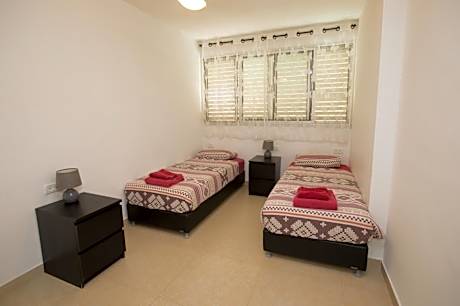Offering inner courtyard views, Hadass Desert Inn in Dimona provides accommodations, barbecue facilities, and a shared lounge. This condo hotel features free private parking and daily room service. The condo hotel offers garden views, an outdoor fireplace, a 24-hour front desk, and free Wifi is available throughout the property. All units at the condo hotel come with air conditioning, a seating area, a flat-screen TV with satellite channels, a kitchen, a dining area, and a private bathroom with free toiletries and a walk-in shower. A microwave, a fridge, and stovetop are also offered, as well as a kettle. At the condo hotel, units come with bed linen and towels. Ben Gurion University is 26 miles from the condo hotel. Ben Gurion Airport is 81 miles from the property, and the property offers a paid airport shuttle service.