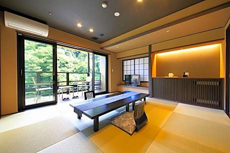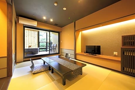 This family room features a hot tub and a private open-air bath. The spacious family room features air conditioning, a mini-bar, a terrace with mountain views as well as a private bathroom boasting a bath. The unit has 2 beds and 3 futons.