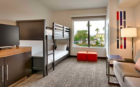 El Hampton Inn & Suites Anaheim Resort Convention Center está situado en Anaheim, a 18 minutos a pie del centro de convenciones de Anaheim, y ofrece registro de entrada y salida exprés, habitaciones para no fumadores, piscina al aire libre, WiFi gratuita y salón compartido. Este hotel de 3 estrellas ofrece cocina compartida y recepción 24 horas. Hay aparcamiento privado disponible en el establecimiento. Todas las habitaciones están equipadas con aire acondicionado y TV de pantalla plana, y algunas unidades del hotel tienen caja fuerte. Las habitaciones incluyen nevera. El Hampton Inn & Suites Anaheim Resort Convention Center sirve un desayuno buffet o americano. El alojamiento cuenta con solárium. El Hampton Inn & Suites Anaheim Resort Convention Center también cuenta con centro de negocios y cajero automático. Disneyland está a 1,8 km del Hampton Inn & Suites Anaheim Resort Convention Center, mientras que Disney California Adventure se encuentra a 3,9 km. El aeropuerto más cercano es el aeropuerto John Wayne, a 18 km del alojamiento.