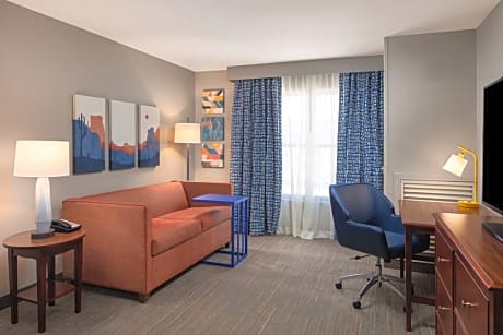 Located just off Interstate-10, one mile from El Paso International Airport. Complimentary buffet breakfast is served daily. A manager's reception with free drinks and snacks is offered on Tuesday and Wednesday evenings. Guest rooms at the Hampton Inn in El Paso-Airport feature a work desk, coffee maker, microwave, mini-fridge, and cable flat-screen TV in every room. Book a spacious apartment style suite featuring a bedroom with 1 king or 2 queen beds, living room with a sofa sleeper, and full kitchen. Airport transportation provided by complimentary ride share service from 6am-10pm. Additional amenities at the Hampton Inn & Suites El Paso – Airport include in-house gym, business center, and Wireless HSIA throughout property, El Paso Children's Hospital and Texas Tech University Health Sciences Center are within 9 minutes' drive of the property.