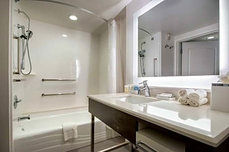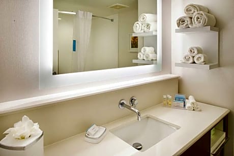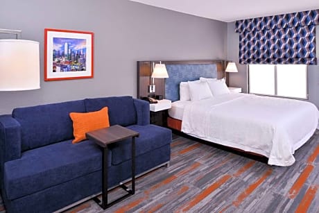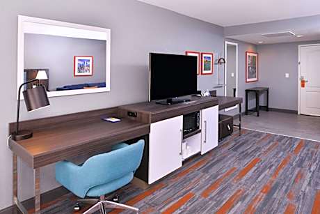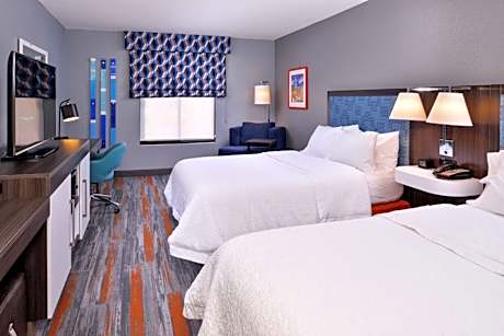Kitchenette, TV, free WiFi, sofa bed, coffeemaker, desk, microwave, refrigerator Unwind in this studio suite, which contains two queen clean and fresh Hampton beds®, a handy sofa bed, and a kitchenette area, complete with microwave, refrigerator and coffeemaker. Stay on top of business at the desk and up-to-date with free WiFi. The bathroom includes a shower with a curved rod that allows for more space and light.