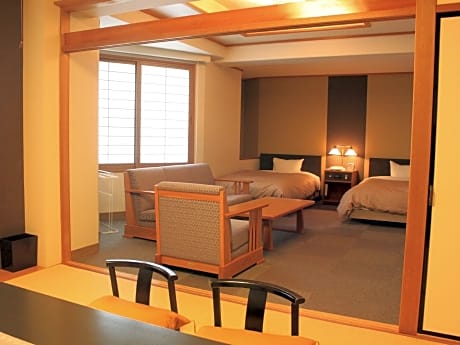 Hanabishi Hotel provides flawless service and all the necessary facilities for visitors. Stay connected with your associates, as complimentary Wi-Fi is available during your entire visit. The ryokan offers taxi amenities to assist you in discovering your desired offerings in Hakodate. When arriving by car, you'll be grateful for the on-site complimentary parking at ryokan. The ryokan offers reception amenities including luggage storage and safety deposit boxes to ensure a comfortable stay for guests.Whether you're here for an extended stay or simply require fresh garments, the ryokan ensures your cherished travel attire remains spotless and accessible with the convenience of laundromat located on the premises.The ryokan's daily housekeeping ensures an excellent option for your stay. Smoking is permitted solely in the specified smoking zones allocated by ryokan. In order to ensure the utmost level of relaxation, the guestrooms feature an inviting design and are equipped with all basic necessities, creating a delightful stay experience.To ensure a pleasant stay, a selection of rooms at ryokan come furnished with linen service, blackout curtains and air conditioning, all designed with your ease in mind.Several chosen accommodations at Hanabishi Hotel have a separate living room incorporated into the room design. Selected rooms offer in-room amusement like television as a source of entertainment for guests to enjoy. Within specific rooms, a refrigerator, instant coffee and instant tea is conveniently available for your use.Understanding the significance of bathroom facilities in enhancing visitor contentment, ryokan offers a hair dryer, toiletries and bathrobes within a few chosen chambers. Start your day stress-free at Hanabishi Hotel as breakfast is made available for you on the premises. How about kicking off each day of your getaway with a delicious cup of coffee? At the ryokan, relish in the invigorating taste of a freshly brewed, excellent coffee. Various excellent meal offerings at ryokan ensure that enticing and easily accessible options are constantly available.Upon your arrival, don't miss experiencing karaoke rooms for enjoyable in-house evening entertainment.Throughout the day and night, guests can enjoy light refreshments with the ryokan offering vending machines.Throughout the day, engage in the entertaining activities available at Hanabishi Hotel. Unwind and conclude each day delightfully by stopping by massage, hot tub, spa and sauna, ensuring a soothing experience.