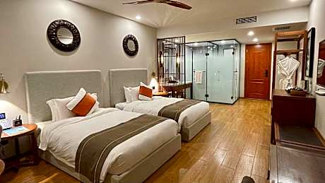 Great care is taken to ensure guests experience comfort through top-notch services and amenities. Remain linked during your visit by utilizing the complimentary internet access available.Need some relaxation? Your room features daily housekeeping to make your stay even more comfortable and enjoyable.Crafted for coziness, every guestroom provides an array of features, guaranteeing a tranquil night's sleep while maintaining the level of comfort.Expand your in-room entertainment choices with various amenities, such as television offered in certain accommodations. Rest assured that your hydration needs will be met, as some guestrooms are equipped with a refrigerator and bottled water.It is worth noting that certain guest bathrooms feature a hair dryer, toiletries and bathrobes for your convenience. Begin your day on a delightful note with a scrumptious complimentary breakfast, consistently served at Happy Home Master.