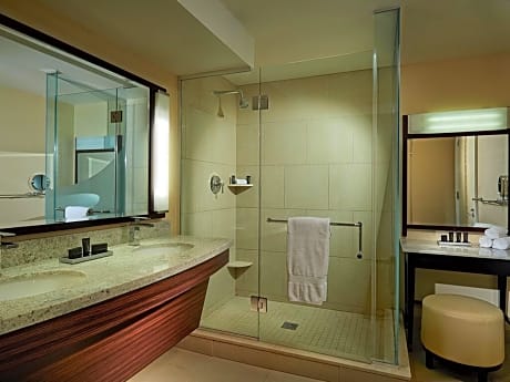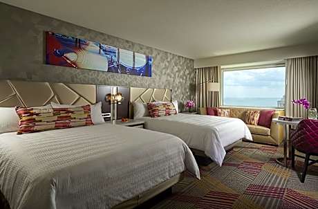 Hard Rock Hotel & Casino Atlantic City cuenta con 1.971 habitaciones y suites diseñadas para que puedas vivir tus fantasías de estrella de rock. Espaciosas, elegantes y diseñadas para impresionar, disfrutarás de comodidades exclusivas como colchones con la parte superior acolchada, ropa de cama Sleep Like a Rock y artículos de baño Rock Spa. También hemos incluido una variedad de características de alta tecnología, como televisores de pantalla plana de 40" y acceso inalámbrico a Internet. Ten a mano tus bocadillos favoritos en el práctico mini refrigerador. Termina tus notas de presentación en la espaciosa estación de trabajo o simplemente relájate en una silla de gran tamaño. Desde cafeteras hasta cajas de seguridad en la habitación, hemos pensado en todo para que tu estadía sea legendaria. Lo mejor de todo es que con el exclusivo programa de servicios musicales Sound of Your Stay de Hard Rock, puedes crear el ambiente con discos de vinilo gratuitos o tocar una guitarra Fender en la privacidad de tu propia habitación.