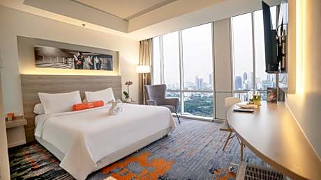 Nos esmeramos en garantizar la comodidad de nuestros huéspedes con servicios y comodidades de primera categoría. Manténgase conectado durante su visita gracias al acceso gratuito a internet. Antes de su llegada, puede organizar el transporte al aeropuerto, lo que le garantiza una experiencia fluida y eficiente tanto a la llegada como a la salida. Los servicios de taxi y alquiler de coches del hotel le garantizan una exploración sin complicaciones de Yakarta. El hotel ofrece aparcamiento gratuito para los huéspedes que lleguen con su propio medio de transporte. Planifique fácilmente sus actividades diarias y necesidades de viaje con el servicio de conserjería, consigna de equipaje y cajas de seguridad que ofrece la recepción. Para visitas prolongadas o cuando lo necesite, el servicio de tintorería y lavandería le garantiza que su ropa de viaje preferida se mantenga limpia y accesible. Durante sus días y noches de ocio, las comodidades de la habitación, como el servicio de habitaciones 24 horas, el servicio de habitaciones y el servicio de limpieza diario, le permiten maximizar su estancia. Para necesidades menores o imprevistas, las tiendas de conveniencia pueden atenderlas rápidamente sin necesidad de salir del hotel. En zonas designadas, solo se permite fumar. Diseñadas para brindar comodidad, cada habitación ofrece una variedad de comodidades que garantizan un sueño reparador, manteniendo el nivel de confort. Para una estancia más placentera, algunas habitaciones del hotel están equipadas con servicio de ropa de cama, cortinas opacas y aire acondicionado. En algunas habitaciones, los huéspedes pueden disfrutar de entretenimiento como televisión y televisión por cable durante su estancia. Tenga la seguridad de que sus necesidades de hidratación estarán cubiertas, ya que algunas habitaciones están equipadas con refrigerador, agua embotellada, cafetera o tetera, café instantáneo, té instantáneo y minibar. Cabe destacar que algunos baños cuentan con secador de pelo, artículos de tocador y toallas para su comodidad. Cada mañana en HARRIS Suites fX Sudirman, un delicioso desayuno casero le dará el comienzo perfecto al día. Comience sus mañanas de vacaciones con su taza de café, que se ofrece a diario en la cafetería del hotel. Durante su visita, deléitese con una variedad de deliciosas opciones culinarias en el hotel para mejorar su experiencia. ¿Le preocupan sus preferencias gastronómicas? ¡No se preocupe! HARRIS Suites fX Sudirman ofrece una variedad culinaria con opciones halal para todos los gustos. ¡Disfrute de una velada fantástica sin esfuerzo! Disfrute de una noche entretenida sin salir del bar. ¿Tiene habilidades culinarias excepcionales? Prepare sus comidas personalmente en la cocina compartida del hotel. HARRIS Suites fX Sudirman ofrece una magnífica variedad de servicios de ocio para el disfrute de sus huéspedes. Consiéntase y disfrute de una visita a la peluquería. Comience sus vacaciones de la mejor manera con un chapuzón en la piscina. Queme esas calorías de las vacaciones visitando el hotel y utilizando sus instalaciones de ejercicio completamente equipadas.