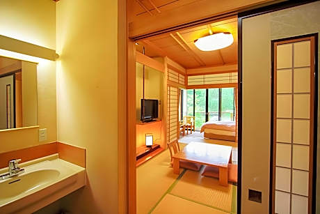 At Hatago Tsubakiya, exceptional service and top-notch amenities create a memorable experience for guests. Complimentary internet access is available in the hotel to ensure you stay connected during your visit.Complimentary parking is available for guests.Continuously receive the support you require through front desk amenities such as luggage storage. At the hotel, utilize the convenient laundromat to maintain your preferred travel attire fresh, allowing you to pack lighter. Due to health concerns, smoking is strictly prohibited within the entire premises of hotel.For the health and well-being of all guests and staff, smoking is restricted exclusively to assigned zones. Accommodations come equipped with all the conveniences required for a restful night's slumber.A selection of rooms feature linen service and air conditioning to ensure your comfort and convenience.A few accommodations at Hatago Tsubakiya also include unique design elements like a balcony or terrace. A number of rooms feature television for guest amusement and enjoyment. In certain rooms, the hotel offers visitors access to a refrigerator and a coffee or tea maker. Hatago Tsubakiya offers a hair dryer and toiletries in the restrooms of specific accommodations. An evening spent at hotel's karaoke rooms can offer as much enjoyment as venturing out with your fellow travelers. At Hatago Tsubakiya, affordable refreshments are available 24/7 through the convenient vending machines on-site.