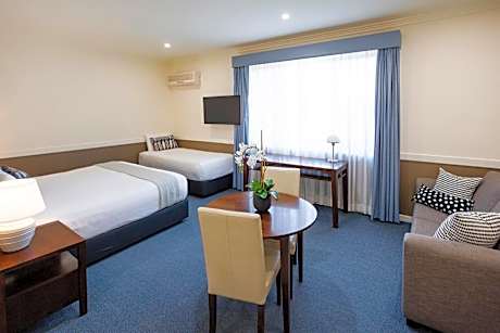 Located within the grounds of Hawkesbury Race Club, the Hawkesbury Race Club Motel features views of the racecourse, stables and the world-renowned Blue Mountains. A 1-minute walk from Clarendon Railway Station, it offers a 5-star luxury with an outdoor pool, free undercover parking and a breakfast restaurant. Fully air-conditioned, modern guest rooms come with a microwave, a toaster and kitchenware. Offering views of the surrounding garden and mountains, each also comes with a DVD player and a flat-screen TV with cable channels. The property features accommodations for horses within 656 feet of the motel, with sheltered yards and stables. Parking for horse trailers and floats is also available. Motel Hawkesbury Race Club is within a 10-minute drive of local cafes and restaurants. It is a 7-minute drive from Windsor Country Golf Club and is across the Hawkesbury Showground. Central Sydney is a 1-hour drive away.