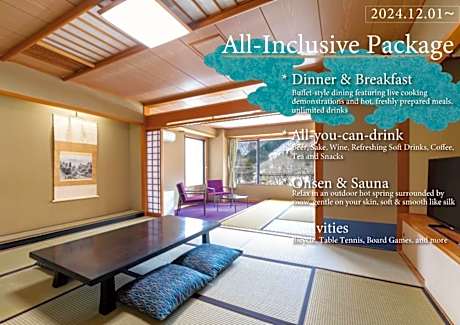Great care is taken to ensure guests experience comfort through top-notch services and amenities.Remain linked during your visit by utilizing the complimentary internet access available. Experience the wonders of Nikko with ease by utilizing the services provided at shuttle. The ryokan offers complimentary parking for guests who arrive with their own mode of transport. Reception services featuring luggage storage are available to cater to your requirements. Need some relaxation? Your room features daily housekeeping to make your stay even more comfortable and enjoyable. The ryokan is completely smoke-free. In limited designated zones, smoking is exclusively permitted.Crafted for coziness, every guestroom provides an array of features, guaranteeing a tranquil night's sleep while maintaining the level of comfort.For an elevated experience at ryokan, select rooms are equipped with air conditioning to improve your stay.Expand your in-room entertainment choices with various amenities, such as television offered in certain accommodations.In select rooms, the ryokan offers visitors access to a refrigerator. Maintain your cleanliness and feel revitalized using a hair dryer available in select guest restrooms. During your visit, indulge in a range of delightful culinary choices at ryokan to enhance your experience.Snack vending machines operate around the clock, providing you with easy access to treats regardless of the hour.Indulge in the numerous pursuits available at KAMENOI HOTEL NIKKO YUNISHIGAWA ALL-INCLUSIVE RESORT. Treat and spoil yourself by taking a trip to sauna.
