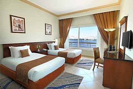 Located on the Nile River in the downtown, Tolip Aswan Hotel offers views of the Nile. It features a fully equipped gym, a table tennis and various entertainments options such as bowling and cinema. Featuring a balcony with Nile view, all rooms and chalets are furnished in a homey style. Each one offers a satellite TV, a mini-bar and an private bathroom with shower. Tolip Aswan Hotel offers a wide array of buffets and à-la-carte menus where guests can savor their meal while enjoying the Nile View. Cocktails are served at the Lobby bar, pool bar and the Isis pub. The hotel’s health club features sauna, steam bath and various massage treatments, all at an added fee. A children’s playground is also available at the hotel. Guests can visit the Tombs of the Nobles which is 10 minutes by the motor boat from Tolip Aswan Hotel. Aswan airport is 13 mi away. Free private parking is possible on site.