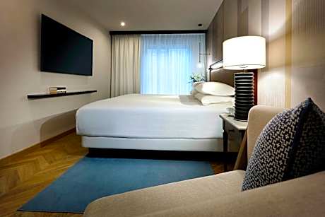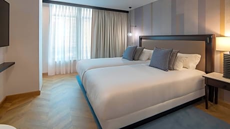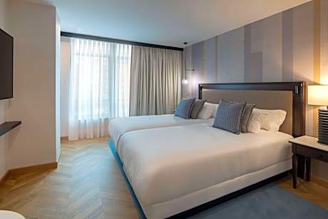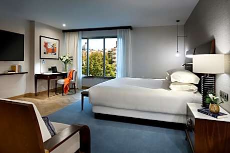 The elegant and welcoming Hyatt Regency Hesperia Madrid is a five-star hotel strategically located in the heart of Madrid, right in the Paseo de la Castellana and next to the art triangle formed by the Thyssen, Prado and Reina Sofia Museums and the financial district of Azca. It is also very close to the Jorge Juan passage and the city's fashionable restaurants. The El Corte Inglés department store with its luxury brand departments and the "Golden Mile" are within walking distance of the hotel. The hotel’s strategic location makes it the ideal choice for combining business trips with the cultural, art, leisure and gastronomic offerings that the city has to offer. The elegant rooms at the Hyatt Regency Hesperia Madrid include a 65" flat screen TV equipped with a ChromeCast system, a Nespresso coffee maker, a kettle, a rain shower, a pillow menu and luxury amenities. Room service is available 24 hours a day and free WiFi in the whole building is featured. We offer a number of unique gastronomic options. La Manzana restaurant, with its characteristic interior courtyard and its play on lights, offers the possibility of enjoying creative cuisine in an exclusive space. Next to La Manzana, the distinctive Mery Bárbola offers cocktails and a selection of signature tapas in a relaxed atmosphere. In addition, for those looking for signature cuisine, Dani García offers two new gastronomic proposals: Leña, which breaks with all the stereotypes of a traditional steakhouse, combines innovation, tradition and product in the best way and the Smoked Room restaurant, awarded with 2 Michelin Stars, offers an exclusive culinary journey and a unique gastronomic experience. The hotel roof comes with a gym, with impressive views of Madrid. There are also 9 meeting rooms and a business center with a computer and printer. Hyatt Regency Hesperia Madrid is located opposite the National Natural History Museum and less than 1.2 mi from the Bernabéu Stadium and with the city's most exclusive shops. Gregorio Marañón Metro Station is 164 ft away, while direct airport trains stop at Nuevos Ministerios Station, within a 10-minute walk.