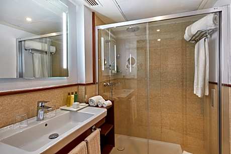 Housed in a stately building with gardens, the charming Secrets Mallorca Villamil is located on Peguera Beach. It features cycling facilities, an outdoor heated swimming pool, a spa with sauna, steam bath, hot tub and sensation showers (all spa services for an extra cost) Rooms offer city views of Paguera, views to the garden or the sea. They include free WiFi, a flat-screen TV and mini-bar. The World Café offers a buffet with a selection of international cuisine made with fresh, seasonal produce. There is a daily breakfast buffet and in summer guests can have breakfast on the terrace overlooking the sea. The Olio Restaurant is located by the pool and serves local dishes such as rice, fresh fish and other snacks. Open in the evening, Seaside Grill Restaurant offers beautiful sea views and serves Mediterranean cuisine. You can also enjoy a drink and live music in Piano and Sky Bar. The hotel also has a gym and free parking for bikes. Massages are available for an extra cost and Pilates and Stretching classes are also available for free. Once a week in summer, the hotel organizes a free boat trip for hotel guests. The Secrets Mallorca Villamil is the official hotel of the Triathlon Challenge Paguera Mallorca. The establishment offers Preferred Club®, with preferential status and exclusive services such as: -access to the Preferred Club Lounge with a selection of snacks and drinks during the day, -exclusive concierge service, -selection of the best rooms including superior attributes, among other special advantages. Nicely located, Secret Mallorca Villamil is 1.9 mi from Golf de Andratx; and you can drive to both Golf de Santa Ponsa and Bendinat Golf Club within 15 minutes by car.
