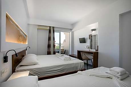 The family-run Hillside Studios & Apartments includes a swimming pool and a snack bar and offers air-conditioned accommodations with views of the Aegean Sea. It is located 0.9 mi away from the sandy beach in Faliraki. Studios and apartments at Hillside are simply furnished and open out to a private balcony. They come with mini fridge and electric kettle. Each unit also has its own bathroom featuring a hairdryer, free toiletries and slippers. All rooms are also equipped with a flat-screen TV and a safety box. Buffet breakfast is prepared in the morning. The on-site mini market stocks everyday necessities and souvenirs. Guests can spend relaxing moments at the sun beds available around the pool or enjoy refreshing drinks, fresh juices, light snacks and traditional flavors at the on-site bar throughout the day. The center of Faliraki is just 0.9 mi from the Hillside Studios & Apartments. The Medieval town of Rhodes is 8.7 mi away, while Diagoras International Airport is at 13 mi and Lindos at 22 mi. Guests wishing to explore the island can benefit from the car/motorbike rentals provided at discounted rates at the reception. Free Wi-Fi is provided throughout the complex and free on-site parking is possible. License Number(s): 1143K122K0551800