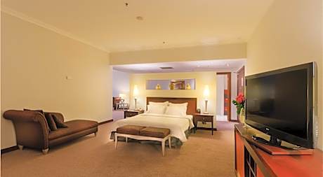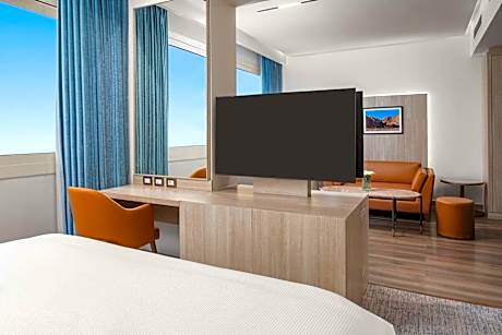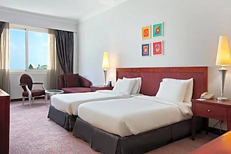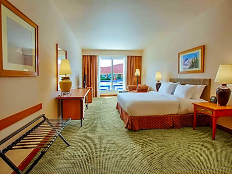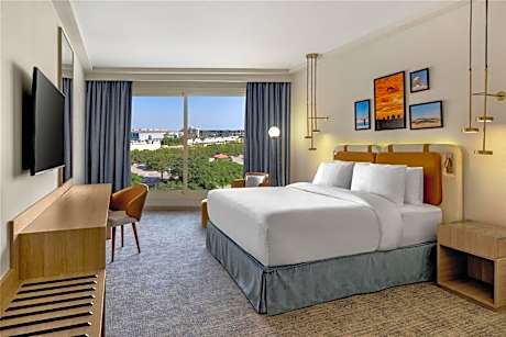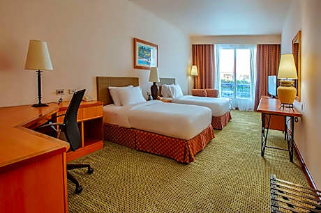 On site of Green Plaza Mall, this Hilton is only steps away from 370 shops. With one outdoor pools, it also features a sun deck and fitness center. The Art Deco-style rooms at the Hilton Alexandria Green Plaza Hotel provide plenty of space. Each air-conditioned room includes a work desk, mini-bar, coffee making facilities, satellite flat screen TV and a Hilton Radio Alarm Clock. Guests can sample pizza, pasta and other Italian delicacies at the Roberto's Italian Restaurant or enjoy breakfast and dinner at the main hotel restaurant Alexander. Ginger Asian restaurant serves Chinese, Japanese and Thai cuisines in a warm and friendly atmosphere, Nefertiti Lobby Bar and Lounge where you can enjoy a snack or a light meal, Aqua Blue Pool Bar is for a refreshing drink or a light meal as well. The property features an Executive Lounge, two business centers and 18 meeting rooms for 3,500 people. The Al-Zahraa Ballroom is among the largest conference rooms in Alexandria. Entertainment options at Hilton Alexandria include a cinema. Sightseeing tours can be booked at Hilton’s 24-hour reception. Borg El Arab Airport is 45 minutes away.