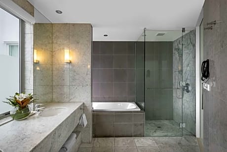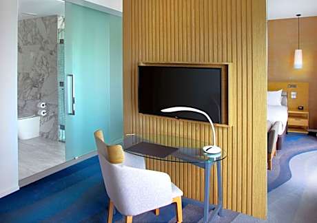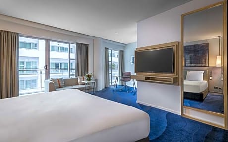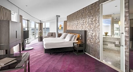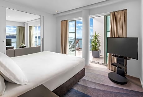 El Hilton Auckland ofrece elegantes habitaciones y suites en una ubicación privilegiada al final de Princes Wharf. Los huéspedes pueden disfrutar de una cena de lujo en el restaurante FISH, que ofrece un menú creativo centrado en ingredientes locales frescos. Los huéspedes tienen acceso a una piscina al aire libre y a un gimnasio interior. El Hilton Auckland se encuentra en el distrito financiero central de Auckland (CBD). Con vistas panorámicas al puerto de Auckland, el Hilton Auckland también ofrece el elegante Bellini Bar, con una extensa carta de cócteles. Disponemos de una variedad de modernos espacios para eventos con capacidad para hasta 700 invitados. El Hilton Hotel Auckland se encuentra a solo 5 minutos a pie del centro de Auckland, de las vibrantes zonas de ocio Viaduct y Britomart, y del nuevo Viaduct Events Center. Todas las habitaciones cuentan con una decoración contemporánea, conexión inalámbrica a internet, zona de trabajo y balcón privado con mesas al aire libre. Algunas habitaciones ofrecen vistas al paseo marítimo de Auckland.