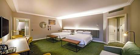 En pleno centro histórico de Bruselas, justo enfrente de la Estación Central, el Hilton Brussels Grand Place goza de una ubicación ideal entre la Grand Place y el Centro de Reuniones y Convenciones Square. Lugares de interés como el Museo Magritte, el Manneken Pis y las Galerías Reales St. Hubert se encuentran a menos de 500 metros del hotel. Disponemos de aparcamiento público con acceso directo al hotel. También disponemos de un minimercado en el vestíbulo donde los huéspedes pueden comprar aperitivos y bebidas para su comodidad. Con vistas a la ciudad, todas las habitaciones disponen de aire acondicionado, wifi gratuito, TV LCD, mininevera para uso personal y menaje para preparar té y café. Además, se admiten mascotas. Quienes reserven una habitación o suite ejecutiva tienen acceso al salón ejecutivo, que ofrece desayuno y aperitivos gratuitos, además de happy hour de 17:00 a 19:00 todos los días. En Sentro À Table Avec Vincent Masson, los huéspedes pueden degustar creaciones culinarias inspiradas en artistas y artesanos que exponen sus obras en el hotel. Además, Sentro cuenta con un bar con cócteles artesanales y aperitivos especiales que complementan a la perfección las bebidas. El hotel se encuentra justo enfrente de la Estación Central de Bruselas, con un tren directo que conecta con el Aeropuerto Internacional de Bruselas (15 min) o se encuentra a 20 minutos en coche. Los trenes Eurostar y Thalys llegan a la Estación Sur, a solo 10 minutos en coche del hotel (5 minutos en tren).