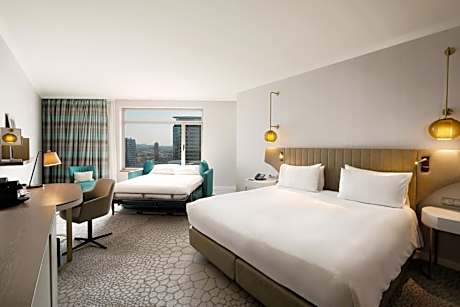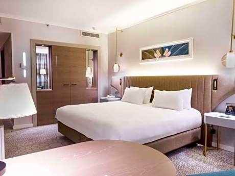 Este hotel se encuentra junto al Centro Comercial Diagonal Mar y a solo 400 metros de la Playa Nova Mar Bella. Ofrece piscina exterior de temporada, gimnasio y habitaciones con aire acondicionado y TV LED. La terraza del Hilton Diagonal Mar Barcelona, Purobeach Barcelona, cuenta con piscina exterior y piscina infantil disponibles desde el 18 de abril hasta octubre, si el tiempo lo permite. Todos los servicios de la terraza Purobeach, incluyendo camas balinesas, tumbonas y masajes, tienen un coste adicional. El restaurante Purobeach ofrece una carta variada, así como una variedad de cócteles clásicos y licores internacionales, preparados al momento. Los huéspedes también pueden explorar el menú del servicio de habitaciones mientras se relajan en su habitación o disfrutar de una amplia variedad de tapas, aperitivos y bebidas locales en Ma'i. El hotel dispone de 22 salas de reuniones. El Centro de Convenciones CCIB de Barcelona se encuentra junto al hotel. La estación de metro El Maresme-Fórum está a 2 minutos a pie, y desde allí se puede llegar al centro de Barcelona en unos 15 minutos. El aeropuerto de El Prat de Barcelona está a 25 minutos en coche.