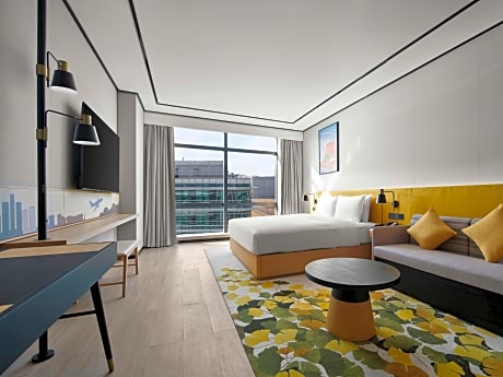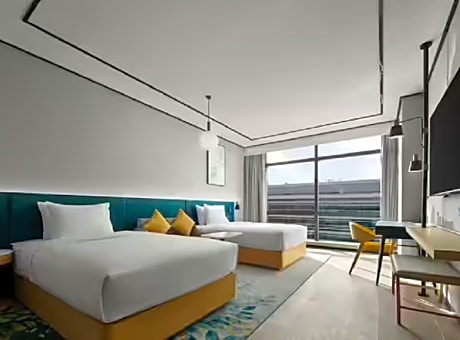 Hilton Garden Inn Beijing Daxing International Airport provides flawless service and all the necessary facilities for visitors.Should you require it, the tours can even assist you in booking tickets and securing reservations for the finest shows and events in the vicinity. In order to ensure the utmost level of relaxation, the guestrooms feature an inviting design and are equipped with all basic necessities, creating a delightful stay experience. To ensure a pleasant stay, a selection of rooms at hotel come furnished with linen service, blackout curtains and air conditioning, all designed with your ease in mind.Selected rooms offer in-room amusement like television as a source of entertainment for guests to enjoy.Within specific rooms, a refrigerator and mini bar is conveniently available for your use. Understanding the significance of bathroom facilities in enhancing visitor contentment, hotel offers a hair dryer, toiletries and bathrobes within a few chosen chambers. Various excellent meal offerings at hotel ensure that enticing and easily accessible options are constantly available.Throughout the day, engage in the entertaining activities available at Hilton Garden Inn Beijing Daxing International Airport. Guests who enjoy maintaining their fitness regimen while on holiday can visit the fitness center provided by hotel.