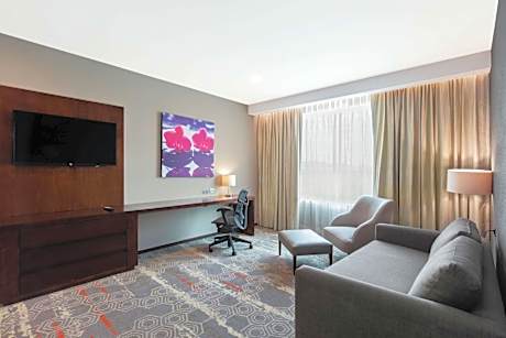 Located in Salamanca, 13 miles from INFORUM Irapuato Convention Center, Hilton Garden Inn Salamanca has accommodations with an outdoor swimming pool, free private parking, a fitness center and a garden. Among the facilities of this property are a restaurant, a shared lounge and room service, along with free WiFi throughout the property. The hotel provides a terrace and a 24-hour front desk. Rooms have air conditioning, a desk and a TV, and certain accommodations at the hotel have a balcony. The rooms will provide guests with a fridge. The breakfast offers buffet, à la carte or continental options. Guests can use the business center or relax in the bar. Bajio International Airport is 36 miles from the property.