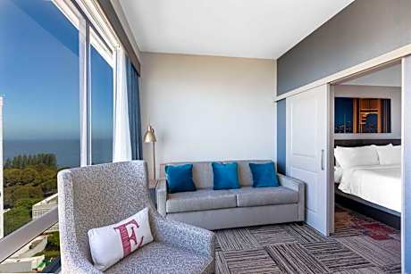 Hilton Garden Inn San Francisco/Oakland Bay Bridge is located just off I-80 and I-580. It features an on-site restaurant and lounge, and a modern fitness center. The warmly decorated rooms offer free WiFi access, a flat-screen TV, a microwave, and a refrigerator. A 24-hour front desk, business center, and ATM are available. The on-site Great American Grill serves traditional American dishes for breakfast, lunch, and dinner. The Pavilion Lounge offers drinks and appetizers. An on-site convenience mart, the Pavilion Pantry, sells snacks and microwaveable meals. Bay Street shopping and dining is just 0.5 mi from Hilton Garden Inn San Francisco. Claremont Country Club is 5 mi away. Oakland International Airport is 12 mi away.