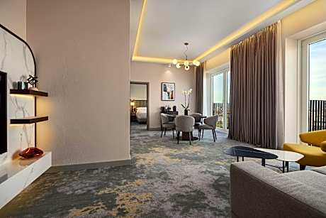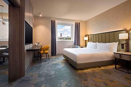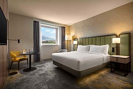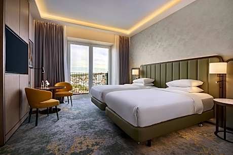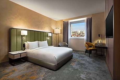 Ubicado en el corazón de Sofía, el Hilton Sofia se encuentra en la entrada de South Park, frente al Palacio Nacional de la Cultura. Es fácilmente accesible gracias a su proximidad a la estación de metro Unión Europea, que conecta a los huéspedes con el Aeropuerto Internacional de Sofía en 25 minutos. Las habitaciones del Hilton Sofia, recientemente rediseñadas e inspiradas en la naturaleza, están decoradas en tonos tierra y ofrecen vistas panorámicas al parque, la ciudad y la montaña, además de ventanas que se pueden abrir. Todas las habitaciones también cuentan con un televisor de plasma LED y una amplia zona de estar con espacio de trabajo. Un abundante desayuno buffet se sirve a diario en nuestro restaurante OXBO. Los huéspedes que hayan reservado habitaciones y suites ejecutivas tienen acceso privado gratuito a nuestro Executive Lounge, con opciones de comida y bebida durante todo el día. La principal calle comercial peatonal, Vitosha, está a solo 5 minutos a pie y la Catedral de Alexander Nevsky, a 20 minutos a pie. Se ofrece servicio de transporte diario al aeropuerto bajo petición.