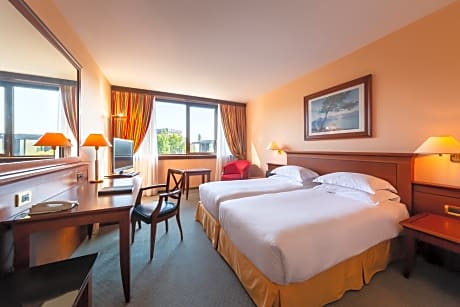 El Hilton Strasbourg se encuentra cerca del Parlamento Europeo, a solo 3 paradas de tranvía del centro de Estrasburgo. Los huéspedes tienen acceso gratuito al gimnasio y a la sauna del centro de bienestar. Hay wifi gratis en todo el hotel. Todas las habitaciones del Hilton Strasbourg Hotel, con aire acondicionado e insonorizadas, ofrecen vistas al Parlamento o a la Catedral. Algunas también tienen acceso directo al salón ejecutivo. En el H! Brasserie podrá disfrutar de cocina de temporada y platos alsacianos. El H! Bar sirve varios tipos de cócteles. Por la mañana, podrá elegir entre un desayuno buffet, continental o exprés. Dispone de recepción 24 horas con servicio de lavandería, servicios VIP y servicio de aparcacoches. También dispone de una terraza donde los huéspedes pueden relajarse. El wifi es gratuito en el vestíbulo, el bar y el restaurante.
