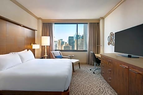 Ubicado en Nueva York, a 8 minutos a pie de Bryant Park, el Hilton New York Times Square ofrece alojamiento con gimnasio, aparcamiento privado, salón compartido y bar. Este hotel de 4 estrellas ofrece servicio de habitaciones y recepción 24 horas. El establecimiento se encuentra a 450 metros del centro de la ciudad y a 8 minutos a pie de la Biblioteca Pública de Nueva York. El hotel ofrece desayuno a la carta o americano. El Hilton New York Times Square alberga un restaurante de cocina americana. También se ofrecen opciones vegetarianas, veganas y sin gluten. Entre los lugares de interés cercanos se incluyen Times Square, Macy's y el Radio City Music Hall. El Aeropuerto LaGuardia está a 12 km.