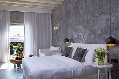 Right on the beach of Agios Ioannis, Hippie Chic Hotel features a pool and elegant accommodations with free WiFi. Guests can taste Mediterranean cuisine and seafood from the on-site restaurant or sushi from the poolside bar. Built in respect with the local architecture, all rooms and suites are fitted with king-size, Coco-mat beds and relaxing interiors. Each comes with air conditioning, flat-screen TV and mini fridge. Some units also offer unobstructed views of the Aegean Sea. The majority of rooms and suites have their own private veranda. However, this does not guarantee visual privacy, as the existence of walls and partitions would prevent the beautiful scenery of Aegean sea and Delos island, you come here to enjoy. The cosmopolitan center of Mykonos Town is around 2.5 mi away from Hippie Chic Hotel. The island’s port and airport are both 2.8 mi away. Free parking is available on site.