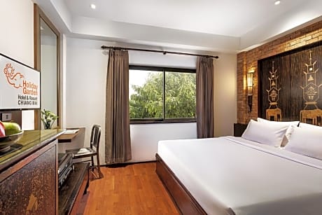 Great care is taken to ensure guests experience comfort through top-notch services and amenities. Remain linked during your visit by utilizing the complimentary internet access available. Prior to your check-in date, you can arrange airport transportation services, guaranteeing a seamless and efficient experience for both arrival and departure. Services offered by taxi, car hire and shuttle at the hotel ensure effortless exploration of Chiang Mai. The hotel offers complimentary parking for guests who arrive with their own mode of transport. Effortlessly plan your daily activities and travel requirements with concierge service, luggage storage and safety deposit boxes provided by the front desk services. Securing top-notch tickets and reserving prime dining spots become effortless through assistance from the hotel's tours.For extended visits or whenever required, the dry cleaning service and laundry service ensures your preferred travel garments remain clean and accessible.During leisurely days and evenings, in-room amenities such as room service and daily housekeeping enable you to maximize your stay in the room. The hotel is completely smoke-free. In limited designated zones, smoking is exclusively permitted. Crafted for coziness, every guestroom provides an array of features, guaranteeing a tranquil night's sleep while maintaining the level of comfort.For a more enjoyable stay, select rooms at hotel are equipped with blackout curtains and air conditioning. At Holiday Garden Hotel, a selection of rooms can be found that showcase unique design elements such as a separate living room.For certain chosen rooms, guests can enjoy in-room amusement like television and cable TV as a part of their stay. Rest assured that your hydration needs will be met, as some guestrooms are equipped with a refrigerator and bottled water.It is worth noting that certain guest bathrooms feature a hair dryer, toiletries and bathrobes for your convenience. Each morning at Holiday Garden Hotel, a scrumptious, homemade breakfast kick-starts the day. Begin your holiday mornings right with your essential cup of coffee, offered daily at the cafe on-site.During your visit, indulge in a range of delightful culinary choices at hotel to enhance your experience. Do you possess exceptional culinary skills? Prepare your meals personally within the hotel at its shared kitchen. Holiday Garden Hotel provides a superb assortment of leisure amenities for guests to enjoy. Begin your holiday perfectly by taking a plunge into the swimming pool.