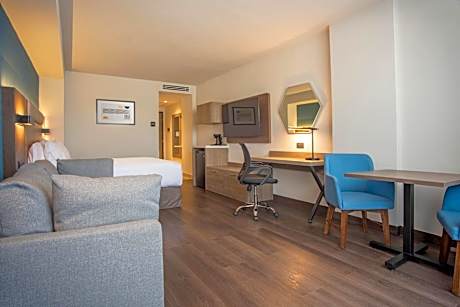 Este hotel se encuentra en el centro de Guadalajara, a solo 8 minutos a pie del centro de convenciones Expo. Cuenta con piscina al aire libre, gimnasio y habitaciones con aire acondicionado, TV de pantalla plana por cable y conexión Wi-Fi gratuita. El Holiday Inn Express ofrece un servicio de traslado gratuito a destinos en un radio de poco menos de 1,6 km. El centro comercial Plaza del Sol está a solo 100 metros y el aeropuerto de Guadalajara está a unos 20 minutos en coche. Las habitaciones del Holiday Inn Express Guadalajara Expo presentan una decoración moderna y cuentan con cafetera y escritorio con silla ergonómica. El hotel sirve un desayuno bufé diario en el luminoso comedor del restaurante del hotel.