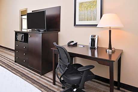El Holiday Inn Express & Suites Emporia Northwest by IHG se encuentra en Emporia. Este hotel de 3 estrellas ofrece wifi gratis. Dispone de piscina cubierta, hot tub y recepción 24 horas. Todas las habitaciones disponen de aire acondicionado, TV de pantalla plana con canales por cable, nevera, cafetera, bañera, artículos de aseo gratuitos y escritorio. Disponen de baño privado con secador de pelo, y algunas habitaciones también disponen de zona de estar. Todas las habitaciones disponen de microondas. El Holiday Inn Express & Suites Emporia Northwest by IHG sirve desayuno continental o americano. El establecimiento cuenta con centro de negocios, gimnasio y aparcamiento privado gratuito. El Aeropuerto Regional de Manhattan está a 125 km.