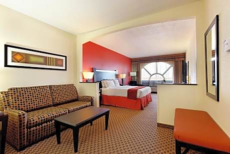 Just off Interstate 20 and a 10-minute drive from downtown Odessa, this hotel features a large outdoor pool. Free Wi-Fi and a breakfast buffet are provided. A 32-inch flat-screen TV, a microwave and a small refrigerator are included in each decorative room at Holiday Inn Express Hotel and Suites – Odessa. There is also a coffee maker and a work desk. Guests of the Odessa Holiday Inn Express can enjoy the on-site hot tub and fitness center. A gift shop and a laundromat are also available. The Ellen Noel Art Museum is a 5-minute drive from the Holiday Inn Express. Midland International Airport is a 10-minute drive away.
