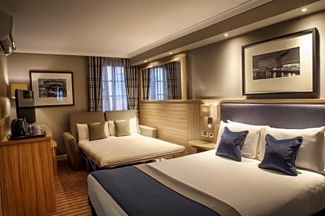 Este Holiday Inn de 4 estrellas se encuentra en el corazón de Glasgow, a solo 50 metros del Royal Concert Hall. Ofrece habitaciones luminosas y elegantes con baños modernos, wifi gratuito ilimitado y un restaurante galardonado. Las habitaciones son modernas y espaciosas y están equipadas con comodidades como puertos USB, wifi gratuito, aire acondicionado y televisores de 40 pulgadas. Para un toque de lujo adicional, elija una suite en la última planta con salón independiente y vistas a Glasgow. El restaurante del hotel, 161 West Nile Street Bar & Kitchen, ofrece tapas con un toque escocés. Elija entre platos como nachos con scones de tattie, lasaña fritta, samosas de eglefino ahumado y una hamburguesa con pakora. Tome autobuses directos desde la estación de autobuses de Buchanan, justo al lado del hotel, hasta el Aeropuerto Internacional de Edimburgo y el Aeropuerto Internacional de Glasgow, en una hora en coche. Los teatros King y Pavilion y la estación de Glasgow Queen Street se encuentran a 5 minutos a pie del hotel. Glasgow cuenta con excelentes tiendas, con el centro comercial Buchanan Galleries a solo 100 metros del hotel.