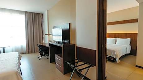 El Holiday Inn Guayaquil Airport ofrece centro de negocios, piscina al aire libre, centro de fitness de última generación con vistas a la ciudad, conexión WiFi gratuita y desayuno bufé en Guayaquil. El aeropuerto internacional José Joaquín de Olmedo se encuentra a 4 minutos a pie. Las modernas habitaciones del Holiday Inn Guayaquil Airport cuentan con conexión WiFi gratuita, cafetera y TV de alta definición. Se ofrece servicio de limpieza diario. El Holiday Inn Guayaquil Airport ofrece servicios de limpieza en seco y de lavandería. El hotel también cuenta con una zona de salón abierta las 24 horas. El establecimiento se encuentra a 15 minutos en coche del centro de la ciudad de Guayaquil y a 10 minutos en coche del centro de convenciones de Guayaquil.