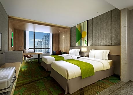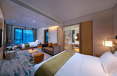 Great care is taken to ensure guests experience comfort through top-notch services and amenities.Remain linked during your visit by utilizing the complimentary internet access available. Prior to your check-in date, you can arrange airport transportation services, guaranteeing a seamless and efficient experience for both arrival and departure. Services offered by taxi, car hire and shuttle at the hotel ensure effortless exploration of Hangzhou. The hotel offers complimentary parking for guests who arrive with their own mode of transport. Effortlessly plan your daily activities and travel requirements with concierge service, express check-in or check-out, luggage storage and safety deposit boxes provided by the front desk services. Securing passes to the city's top attractions is simple with the hotel's ticket service and tours. For extended visits or whenever required, the dry cleaning service and laundry service ensures your preferred travel garments remain clean and accessible. During leisurely days and evenings, in-room amenities such as 24-hour room service, room service and daily housekeeping enable you to maximize your stay in the room. For minor or impromptu requirements, the convenience stores can promptly cater to them without the necessity of stepping out from the hotel. The hotel is completely smoke-free.In limited designated zones, smoking is exclusively permitted. Crafted for coziness, every guestroom provides an array of features, guaranteeing a tranquil night's sleep while maintaining the level of comfort. For an elevated experience at hotel, select rooms are equipped with air conditioning to improve your stay. At Holiday Inn Hangzhou Airport Zone By IHG, a selection of rooms can be found that showcase unique design elements such as a balcony or terrace.For certain chosen rooms, guests can enjoy in-room amusement like daily newspaper, television and cable TV as a part of their stay.In select rooms, the hotel offers visitors access to mini bar.It is worth noting that certain guest bathrooms feature a hair dryer, toiletries and bathrobes for your convenience. Each morning at Holiday Inn Hangzhou Airport Zone By IHG, a scrumptious, homemade breakfast kick-starts the day.Begin your holiday mornings right with your essential cup of coffee, offered daily at the cafe on-site.During your visit, indulge in a range of delightful culinary choices at hotel to enhance your experience.Enjoy an entertaining evening alongside your fellow travelers at hotel's very own karaoke rooms and bar.Experience unparalleled comfort as groceries can be brought right to your room at Holiday Inn Hangzhou Airport Zone By IHG through their distinctive delivery assistance.Holiday Inn Hangzhou Airport Zone By IHG provides a superb assortment of leisure amenities for guests to enjoy.Eliminate those holiday calories by stopping by hotel and making use of their well-equipped exercise amenities.