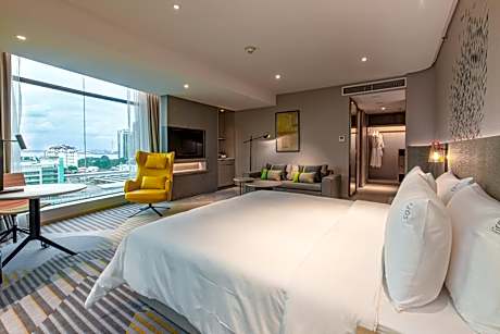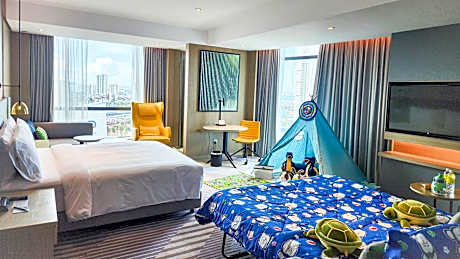 El Holiday Inn Johor Bahru City Centre By IHG ofrece un servicio impecable y todas las instalaciones necesarias para sus visitantes. Manténgase conectado con sus amigos gracias al wifi gratuito disponible durante toda su visita. El hotel ofrece servicio de taxi para ayudarle a descubrir las atracciones que busca en Johor Bahru. Si llega en coche, agradecerá el aparcamiento gratuito del hotel. El hotel ofrece servicios de recepción, como servicio de conserjería, check-in o check-out exprés, consigna de equipaje y cajas de seguridad para garantizar una estancia cómoda. Tanto si se trata de una estancia prolongada como si simplemente necesita ropa limpia, el servicio de tintorería y lavandería del hotel garantiza que su ropa de viaje se mantenga impecable y accesible. Su estancia será cómoda gracias al servicio de habitaciones 24 horas, el servicio de habitaciones y el servicio de limpieza diario como servicio en la habitación para su relajación y disfrute. Para garantizar el bienestar y la comodidad de todos los visitantes, está estrictamente prohibido fumar en todo el hotel. Solo se permite fumar en las zonas designadas por el hotel. Para garantizar el máximo nivel de relajación, las habitaciones presentan un diseño acogedor y están equipadas con todo lo necesario para una estancia placentera. Para garantizar una estancia placentera, algunas habitaciones del hotel incluyen servicio de ropa de cama, cortinas opacas y aire acondicionado, todo diseñado pensando en su comodidad. Algunas habitaciones disponen de nevera, agua embotellada, cafetera o tetera, café instantáneo y minibar. Conscientes de la importancia de las instalaciones de baño para la satisfacción de los huéspedes, el hotel ofrece secador de pelo, artículos de aseo y albornoces en algunas habitaciones seleccionadas. Comience el día sin estrés en el Holiday Inn Johor Bahru City Centre By IHG: el desayuno se sirve en las instalaciones. La excelente oferta gastronómica del hotel garantiza opciones atractivas y de fácil acceso. A su llegada, no se pierda el bar para disfrutar del entretenimiento nocturno. Los visitantes que deseen crear sus propias delicias culinarias apreciarán la cocina compartida de este establecimiento. Disfrute durante todo el día de las entretenidas actividades disponibles en el Holiday Inn Johor Bahru City Centre By IHG. Relájese cada día explorando el baño de vapor, convenientemente ubicado dentro del hotel. Relájese junto a la piscina del hotel y disfrute de un momento de relax. Los huéspedes que deseen mantenerse en forma durante sus vacaciones pueden visitar el gimnasio del hotel.