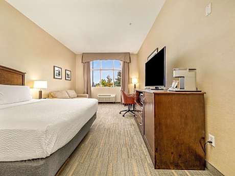 El Holiday Inn Lethbridge by IHG en Lethbridge ofrece alojamiento de 3 estrellas con gimnasio, salón compartido y restaurante. Además, cuenta con cajero automático y parque acuático. El hotel cuenta con piscina cubierta, bañera de hidromasaje y recepción 24 horas. Todas las habitaciones disponen de aire acondicionado, TV de pantalla plana con canales por cable, nevera, cafetera, ducha, artículos de aseo gratuitos y escritorio. El baño privado incluye bañera y secador de pelo, y algunas habitaciones disponen de wifi gratis. Algunas también tienen balcón. Todas las habitaciones incluyen armario. Se sirve un desayuno a la carta, americano o vegetariano. El Holiday Inn Lethbridge by IHG cuenta con centro de negocios y máquinas expendedoras de aperitivos y bebidas. El aeropuerto de Lethbridge está a 5 km.