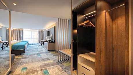 Holiday Inn - Villingen - Schwenningen by IHG features a fitness center, shared lounge, a terrace and restaurant in Villingen-Schwenningen. With a bar, the 4-star hotel has air-conditioned rooms with free WiFi. The hotel provides a sauna and room service. All guest rooms at the hotel are equipped with a seating area, a flat-screen TV with satellite channels and a safety deposit box. Holiday Inn - Villingen - Schwenningen by IHG has some units with city views, and every room includes an electric tea pot. Guest rooms feature a desk. Guests at the accommodation can enjoy a buffet or an American breakfast. Guests at Holiday Inn - Villingen - Schwenningen by IHG will be able to enjoy activities in and around Villingen-Schwenningen, like hiking, skiing and cycling. Guests can use the business center or relax in the snack bar. Speaking German and English at the reception, staff are always on hand to help. Neue Tonhalle is 2.6 miles from the hotel.