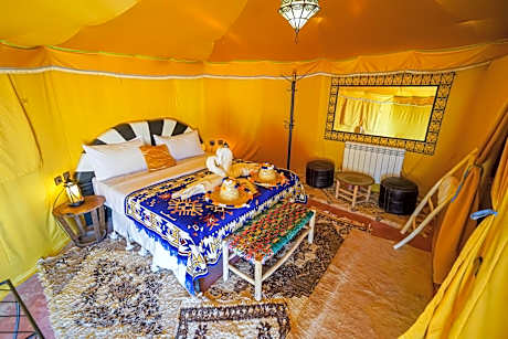 A recently renovated luxury tent, Horaz luxury camp offers accommodation in Merzouga. This 5-star luxury tent offers ski storage space, full-day security, and free Wifi. There's a restaurant serving African cuisine, and free private parking is available. At the luxury tent, every unit is fitted with a balcony. A terrace with an outdoor dining area and mountain views is offered in each unit. At the luxury tent, units come with a wardrobe and a private bathroom. Breakfast is available, and includes buffet, continental and vegetarian options. There is an on-site coffee shop. Yoga is available at the property. Both a ski equipment rental service and a bicycle rental service are available at the luxury tent, while skiing and cycling can be enjoyed nearby.