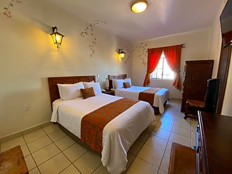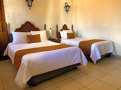 This colonial-style room features 2 double beds, or 1 double and 1 single bed. It looks out onto the hotel patio or the street and includes cable TV, a telephone and free water. A fan, iron and hairdryer are available upon request. The private bathroom with shower includes toiletries.