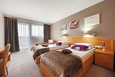 The Hotel Ajda - Sava Hotels & Resorts in Moravske-Toplice offers free access to its pools fitted with large water slide and the Terme 3000 Spa Resort including fitness facilities. Free Wi-Fi is available in all areas. All rooms are air-conditioned and most of them have a balcony. Bathrobes are provided free of charge. Hotel Ajda's restaurant serves International and characteristic Prekmurje cuisine and a wide range of quality Slovenian and international wines. Guests can enjoy morning work-outs and water aerobics twice a day for free. Tennis and golf courses are available, while the area is known for diverse hiking and cycling trails. A public bus stop is 656 feet away, while the Main Bus Station is 3.1 mi from Hotel Ajda. Maribor Airport is located at a distance of 31 mi.