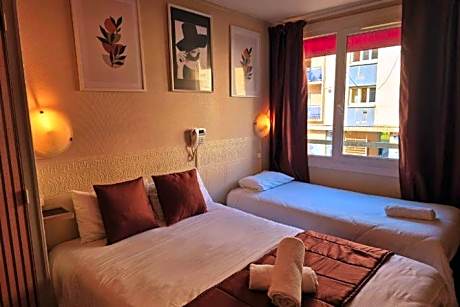 Hôtel Alexandra Center Ville is a hotel located in the heart of Boulogne-sur-Mer, a 4-minute drive from Nausicaá National Sea Center and a 5-minute walk from the harbourd and the pedestrianized area with its shops and restaurants. The beach is a 15-minute walk away. Free WiFi is provided. All rooms are equipped with a telephone, tea and coffee making facilities and a flat-screen TV with satellite channels. They all include a private bathroom with a shower, hairdryer and free toiletries. A continental buffet breakfast is served every morning in the breakfast room or in the comfort of your room with extra charge. Boulogne-Ville Train Station is a 7-minute drive. Secure underground parking QPark (400 places) not managed by the hotel is 164 feet away.