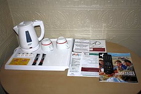 On street side, this double room features a LCD flat-screen TV with satellite channels including BBC and Canal +. It also provides tea and coffee making facilities, free toiletries and a hairdryer.