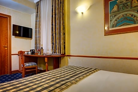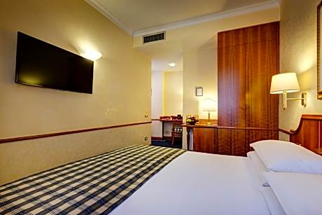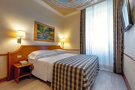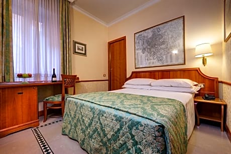 Overlooking Rome's Santa Maria Maggiore Basilica, Hotel Amalfi offers air-conditioned rooms, an extensive buffet breakfast, and free WiFi throughout. Termini Station is 1969 feet away. Rooms at the historical Amalfi Hotel include frescoed ceilings, a flat-screen TV and a mini-bar. The private bathroom has a hairdryer. The sweet and savory breakfast includes scrambled eggs, bacon, sausages, fresh pastries, and hot drinks. The helpful staff at the hotel Amalfi’s 24-hour reception can offer advice on excursions. The Coliseum is a 15-minute walk away. Cavour and Vittorio Emanuele Metro stops are both within 1640 feet of the property.