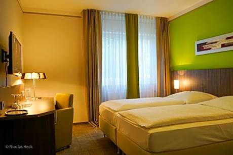 This modern 4-star hotel in the center of Walldorf (quiet location) offers modern air conditioned rooms, free sauna, hot tub, gym, WiFi and private parking. The famous Hockenheimring race track is nearby as well as the cities of Heidelberg, Mannheim, Speyer & Sinsheim. All rooms at the Ambiente hotel feature cable TV, a work desk and a bathroom. Rooms for allergy sufferers and people with physical disabilities are available on request. We are a non-smoking house. Room cleaning is provided every 3rd day (at 4 nights in the middle of your stay). Therefore we offer reduced rates. Varied buffet breakfast is provided in the mornings. Food is served on the terrace in good weather. Several golf courses are within a 10 to 30 minute drive of our house. Guests can explore the Walldorf area on the Ambiente’s free rental bicycles.