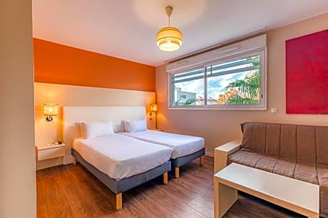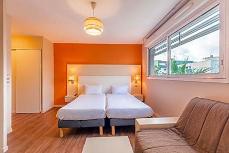 Located 1.9 mi from the historic center in Montpellier, this residence is a 20-minute drive from the Mediterranean beaches. Free WiFi and private indoor or outdoor parking are provided. The property is 3.1 mi from Place de la Comédie and Opéra Comédie and Montpellier Train Station is 2.5 mi away. All air-conditioned studios feature a flat-screen TV with satellite channels. Each studio has a kitchenette equipped with a microwave, fridge and coffee maker. Private bathrooms are fitted with a bath and a hairdryer. A buffet breakfast is served every day and includes pastries, jams, fresh fruits and hot drinks.Bistrot City Montpellier Ovalie open from Monday to Friday, proposes The Chef offers homemade bistronomic cuisine based on fresh, seasonal and tasty products for lunch and dinner and guests can also dine on the shaded terrace at Appart’City Confort Montpellier Ovalie I. GGL Stadium is just a 2-minute walk from the Appart’City Confort Montpellier Ovalie I. Montpellier Méditerranée Airport is 8.1 mi away.