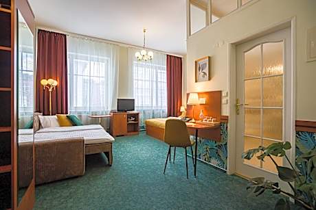 The eco-friendly Hotel Arcus offers spacious rooms and free Wi-Fi access in a quiet location in a residential area of Bratislava. It is only a 10-minute walk away from the old town. The rooms feature cable TV, a work desk, a mini-bar, and a bathroom. A breakfast is served in the morning. The family-run Hotel Arcus dates back to 1929 and has been completely renovated. It has a quiet garden with a terrace. Barbecue facilities are also available free of charge. The Odborárske Námestie tram stop is 492 feet away from Hotel Arcus. It provides quick connections to the city center.
