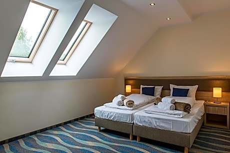 This 3-star Hotel Bardo is located in a quiet area in Bardo, in the vicinity of hiking and cycling trails. The property features an array of facilities, such as a spa & wellness center, an indoor pool, an outdoor gym and a pumptrack. Each room features free WiFi and a flat-screen TV. The private bathrooms come with a shower, a hairdryer and free toiletries. Apart from the wellness facilities, Bardo's guests can benefit from a conference room, equipped with modern multimedia equipment The hotel also offers a restaurant and a bar. A 24-hour front desk and free private parking are provided. The new part of the Holiday Village complex (Cottages and Apartments) is approximately 1312 ft away from the main building.