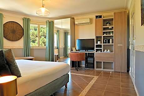 Facing Valinco Gulf, Hotel Bartaccia is located in a 3-hectare flowered park in Propriano. It features a seasonal hot tub and 2 swimming pools heated. The modern guest rooms offer a private terrace or balcony with views of the garden or sea. Each room has a flat-screen TV with cable channels, mini-fridge and safety deposit box. Each room has a private bathroom that is fitted with a walk-in shower. Shops and activities can be found in Propriano and Hotel Bartaccia's staff can provide guests with advice on where to go. The beach of fine sand and the turquoise waters of the Mediterranean Sea are located just 656 feet from the hotel.