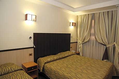 On a street which leads down to the Coliseum, a 5 minute walk away, Hotel Borromeo provides quiet, comfortable rooms, a lovely roof garden and a variety of services. Elegant Hotel Borromeo has a lobby and a TV room where you can enjoy Wi-Fi internet access, or just relax with a drink from the American bar. Head upstairs for breakfast, which you can enjoy on the rooftop terrace, while you gaze out across the Roman rooftops. Everything you will want to see in Rome is close by or easily reachable from Hotel Borromeo. Metro services are located less than a 5 minute walk away. Carry on down the road and you will arrive at the heart of Rome's historic center. In the other direction you will find Rome's Termini station, also close by. The staff at Hotel Borromeo's front desk will be delighted to book trips, tours and transportation for you or simply to provide you with useful information.